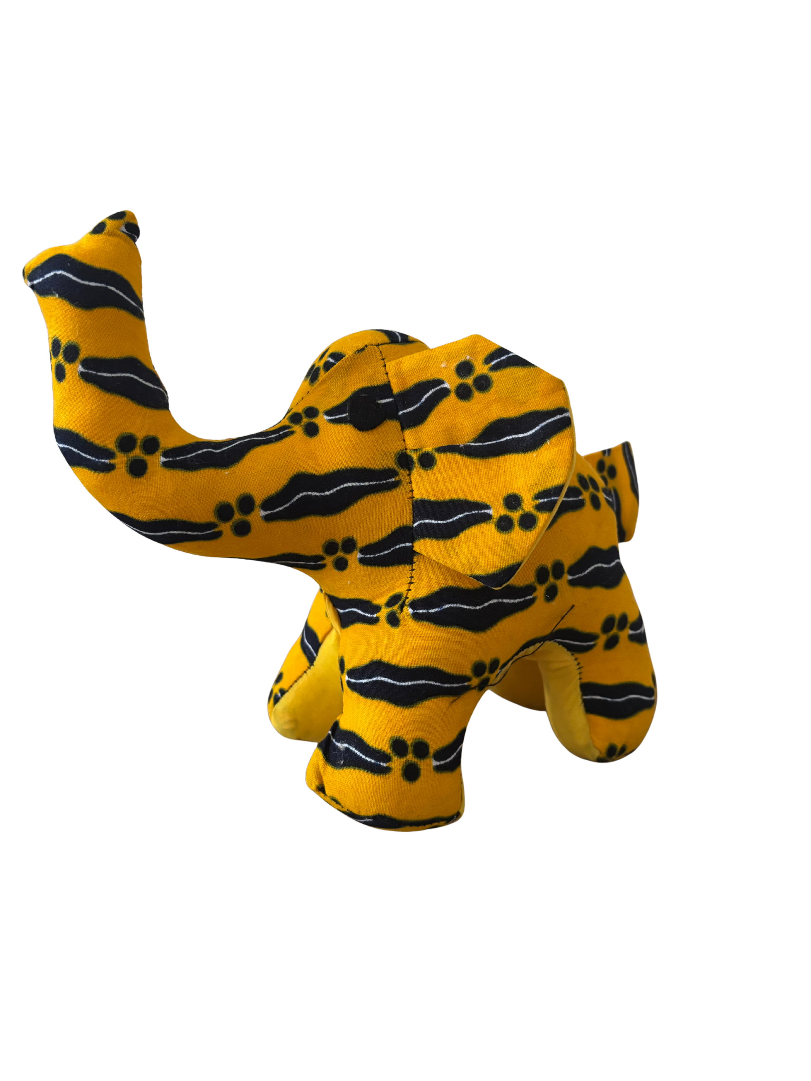 Eléphant en Peluche décorative cousu en WAX, rembourré de fibre synthétique.